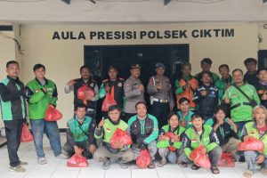 Jumat Berkah, Polsek Cikarang Timur Bagikan Paket Sembako untuk Pengemudi Ojol