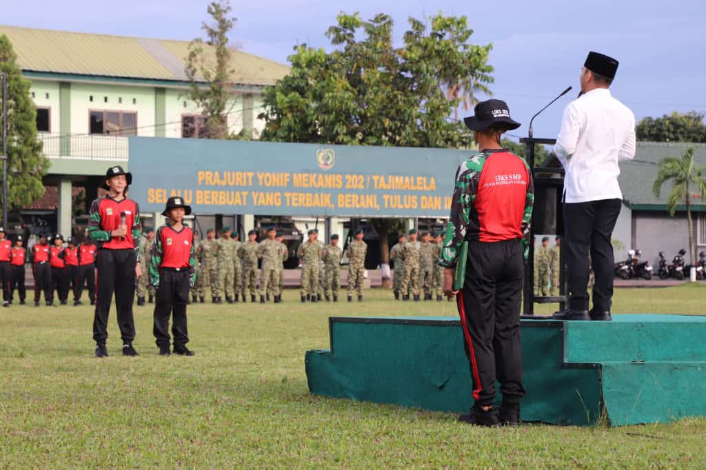“Alhamdulillah hari ini saya diberikan kesempatan melihat langsung anak-anak kami yang kami titipkan di batalion untuk mengikuti pelatihan dasar kepemimpinan siswa,” ujar Bupati.
