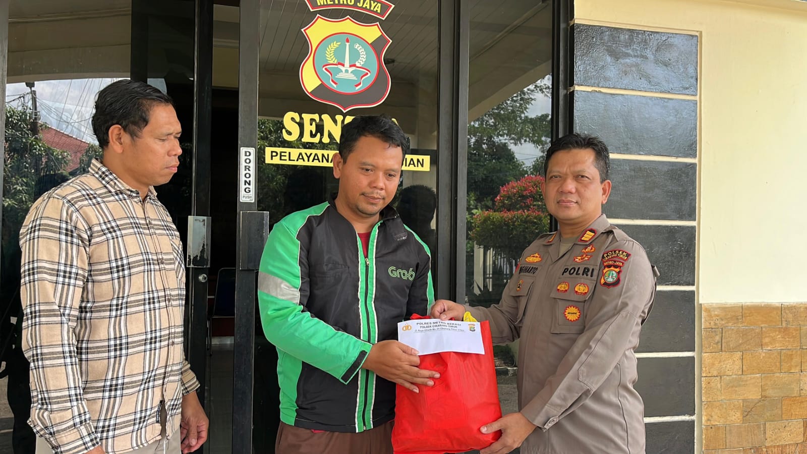 Cikarang Timur – Polsek Cikarang Timur, Polres Metro Bekasi, memberikan apresiasi kepada seorang pengemudi ojek online berinisial S (35) yang berhasil mempertahankan kendaraannya saat menjadi korban percobaan pembegalan di Jalan Pantura Rengas Bandung, Kampung Kosambi, Desa Tanjung Baru, Kecamatan Cikarang Timur.