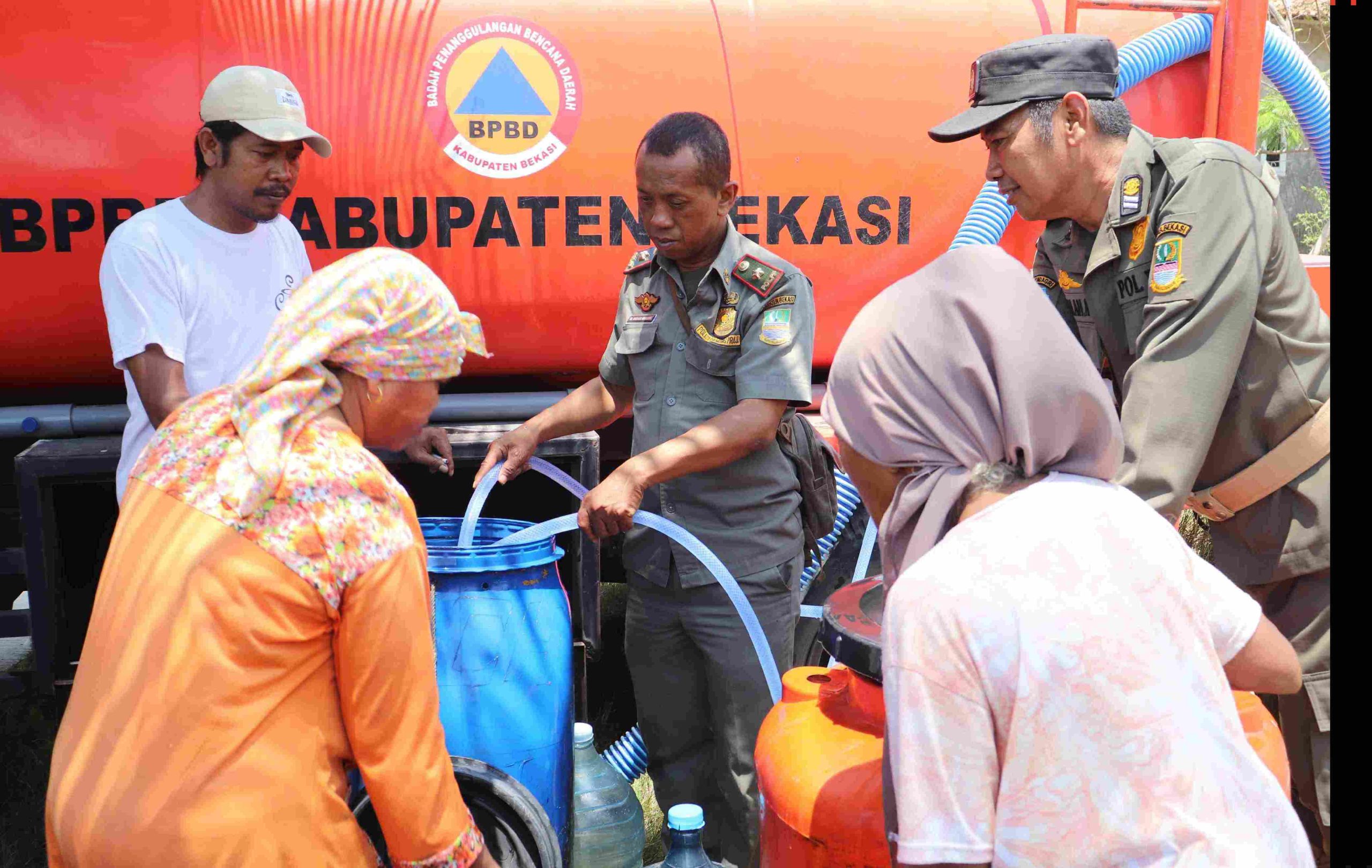 MUARAGEMBONG – Pemerintah Kabupaten Bekasi melalui Badan Penanggulangan Bencana Daerah (BPBD) bersama dengan stakeholder lainnya telah mendistribusikan sebanyak 218.000 liter air bersih untuk membantu warga Kecamatan Muaragembong selama ditetapkannnya status tanggap darurat bencana kekeringan.